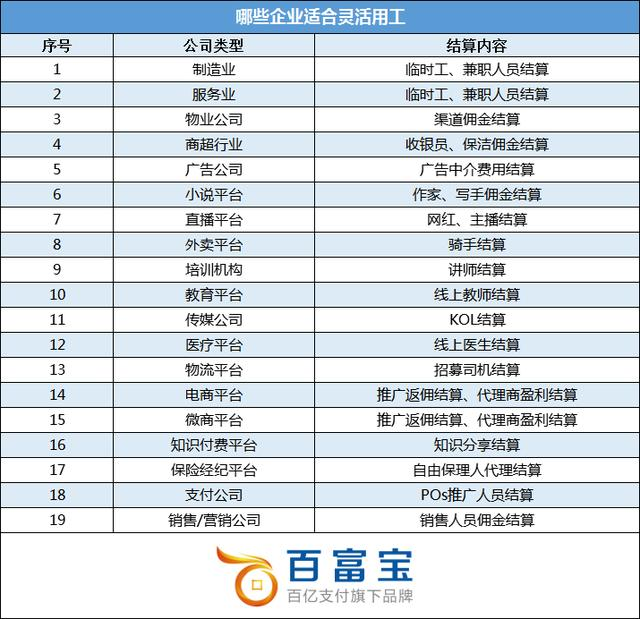 靈活用工部分行業(yè):